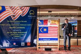 وی افزود: با توجه به نوآور بودن و اولین بودن بافت این فرش نفیس در مالزی، این رویداد در کتاب رکوردهای مالزی ثبت شد و بهمین جهت در این مراسم و برای ثبت در تاریخ روابط فرهنگی ایران و مالزی این برنامه فرهنگی برنامه ریزی شد .